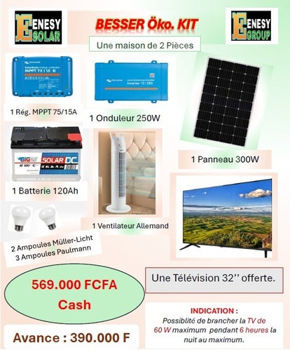 Vous pouvez brancher votre télévision personnelle à l'installation solaire pour une durée maximale de deux heures (2h) par jour. A condition que la puissance de votre télévision n'excède à 50W.
